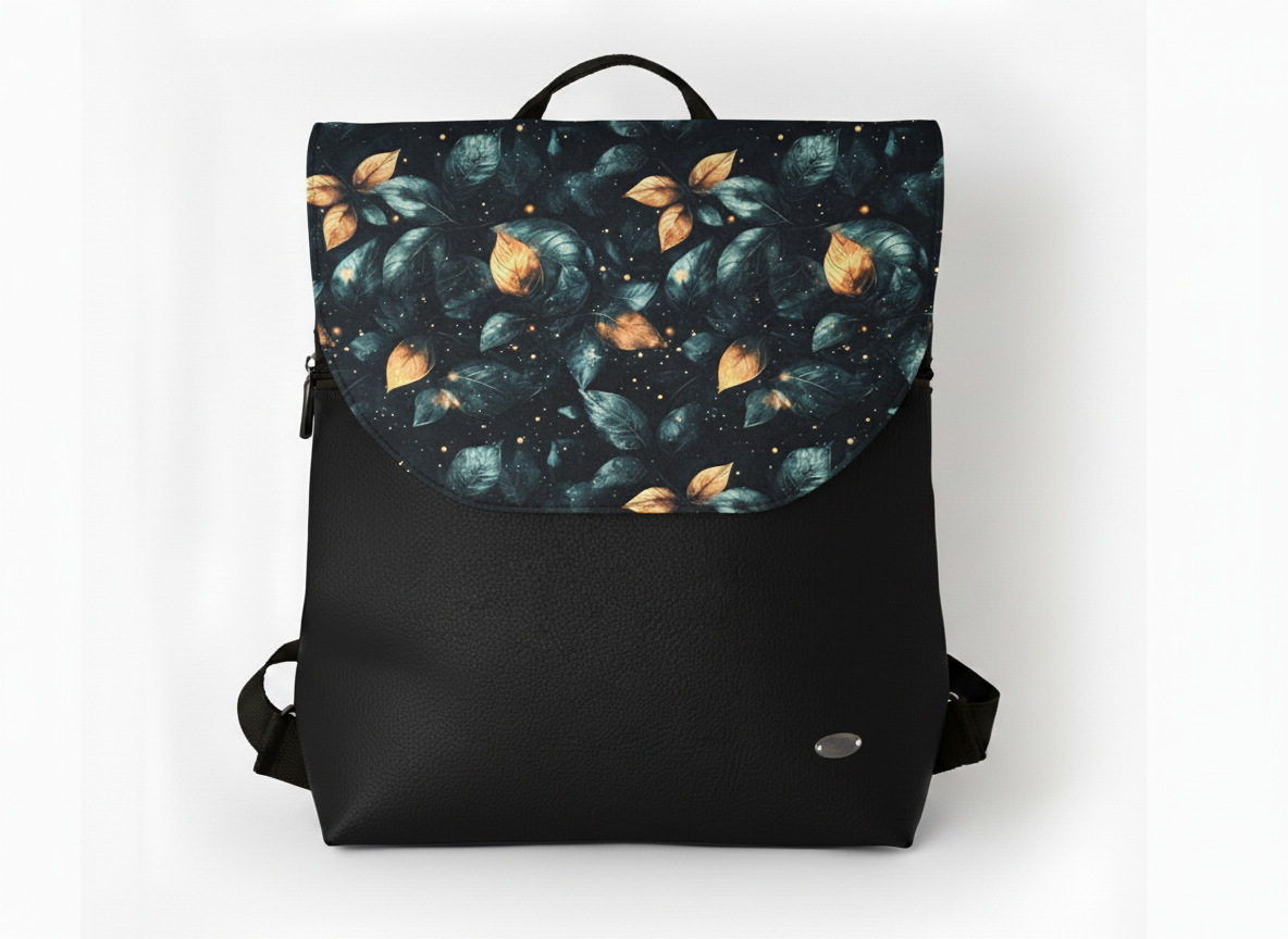 Zunanjost je iz umetnega usnja in nepremočljivega poliestra z vzorcem listja. V notranjosti je bombažna podloga (enobarvna ali s pikami). Ima zunanji in notranji žep. Zapira se z zadrgo. Naramnice so iz bombažne gurtne.